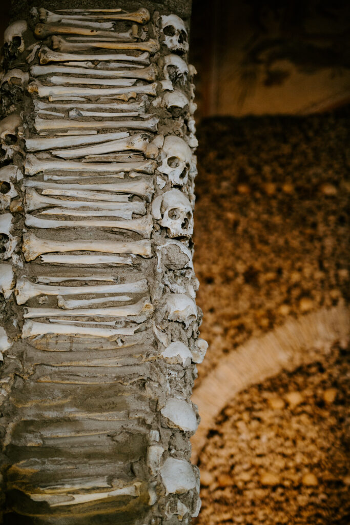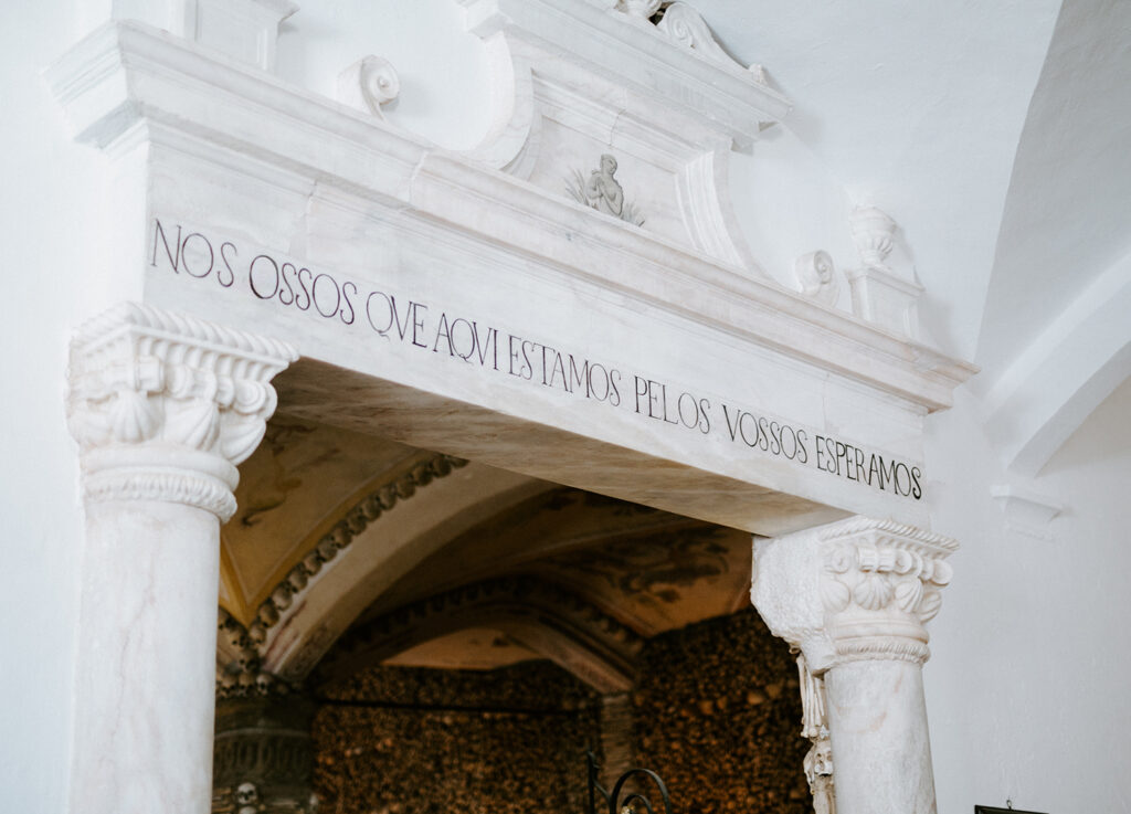 - Évora is home to the Chapel of Bones. Built in the late 1500s, it was modeled after the San Bernadino alla Ossa in Milan, Italy. There are nearly 5,000 corpses buried there. There were many cemeteries in and around the city and in an effort to make more land available but still give their bodies a resting place, the Chapel of Bones was constructed. The bones were put on display for everyone to see. These bones were to serve as a reminder to its residents (who were largely wealthy at the time) of just how fleeting life is. To further drive home that notion is the inscription written above the entrance: